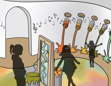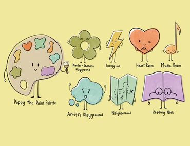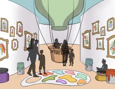 This project was designed for a client interested in opening a children's museum in Savannah, GA. Using the client's guidance, my partner and I, Gianna Monticello designed several themed rooms and interactive and created characters to guide guests through the experience. The central theme of the museum was a paint palette, with each of the paint splotches representing a different room guests could explore. We wanted to play with lots of bright colors and incorporate art supplies into almost all of the exhibits to keep the entire space feeling cohesive.